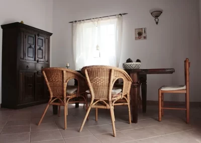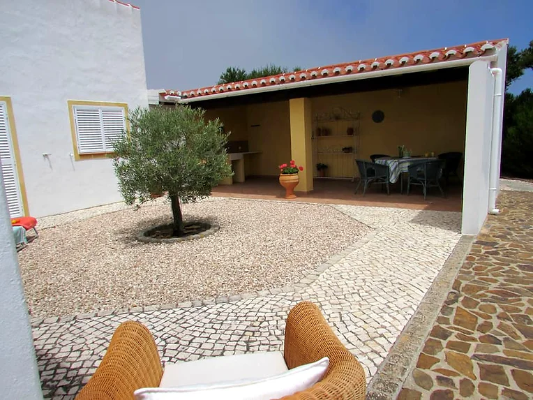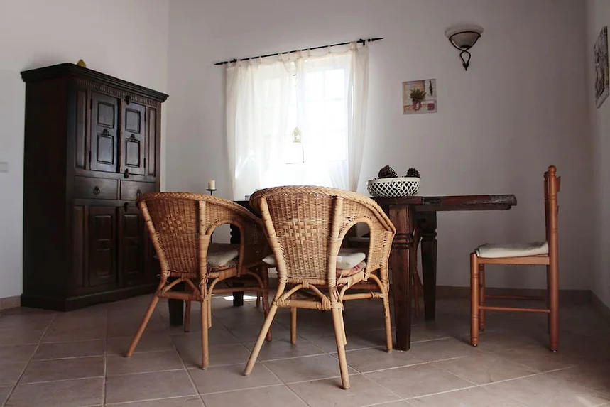 A casa possui 2 quartos e 1 casa de banho. Acomoda 7 pessoas e 1 bébé.