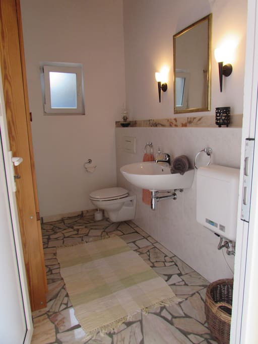 The Arrifana em Flor house can host up to 11 people and 2 babies. There are 4 rooms, one with kingsize bed, another with 3 single beds, a suite with one double bed, a room with a sofa-cama and an extra sofa-cama in the living room. There are 3 bath rooms, one with shower and bathtub, one with shower and one without shower.